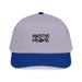 Product features - 65% polyester / 35% cotton blend for durability and comfort - Structured 5-panel mid-profile silhouette with seamless front panel - Matching fabric undervisor and sweatband for a polished finish - Durable plastic snap closure for adjustable fit - Decorated with embroidery or DTF; 6 sewn eyelets for breathability